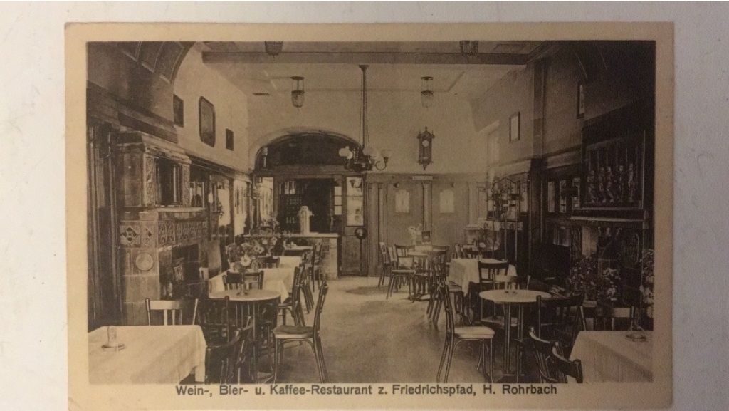 *Friedrichspfad (Kaffee zum Friedrichspfad, Rohrbach, Landstraße 45, Wirt: Richard Schuhmann; vgl. Adreßbuch 1928, S. 461; Wein-, Bier- und Kaffee-Restaurant zum Friedrichspfad, Rohrbach. Karlsruher Straße 45, Wirt: Herbert Schulz; vgl. Adreßbuch 1942, S. 327)