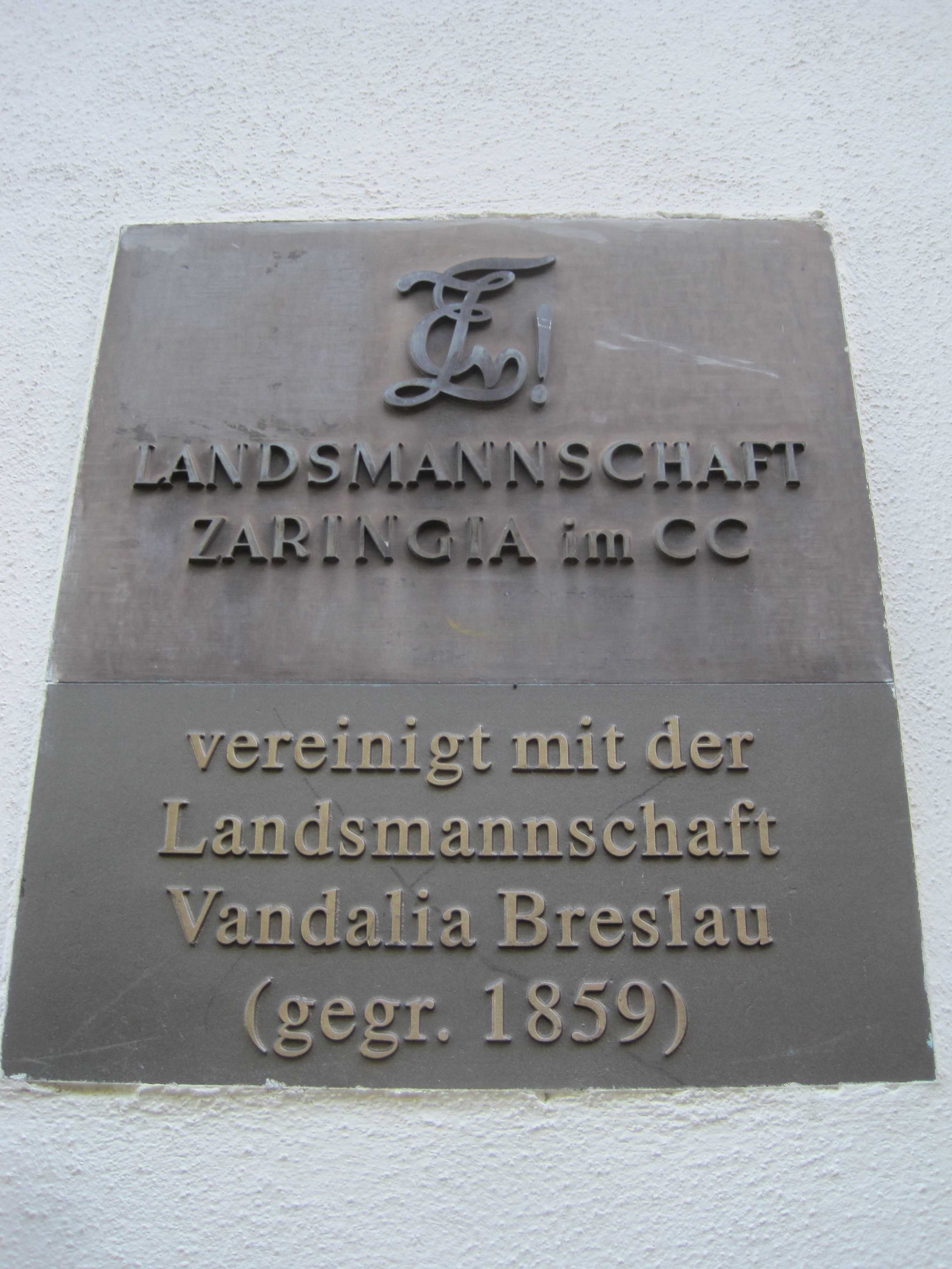 Zaringia, Landsmannschaft im CC , vereinigt mit der Landsmannschaft Vandalia Breslau (gegründet 1859, Schloßberg 9)