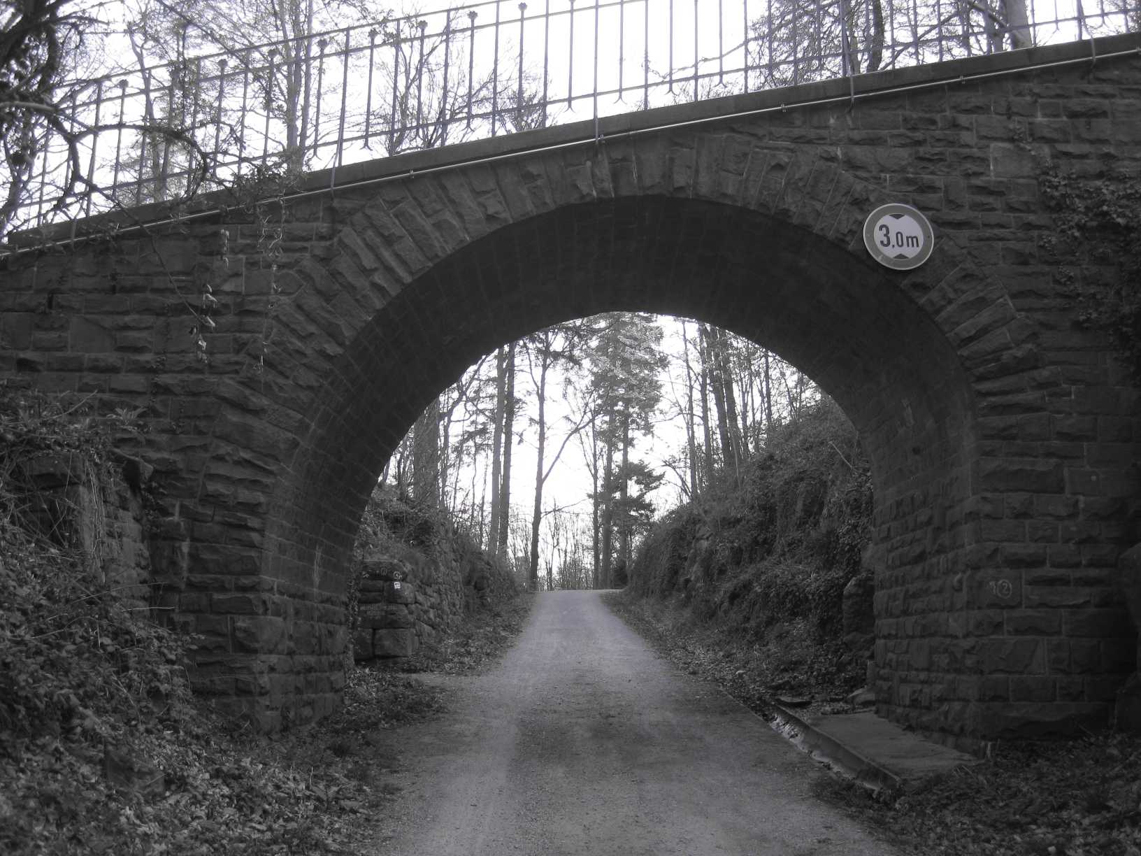 Laumannsbrücke (Stadtwald, benannt nach Forstamtsleiter Adam Laumann, um 1845) vgl. Derwein 1940, Nr. 524