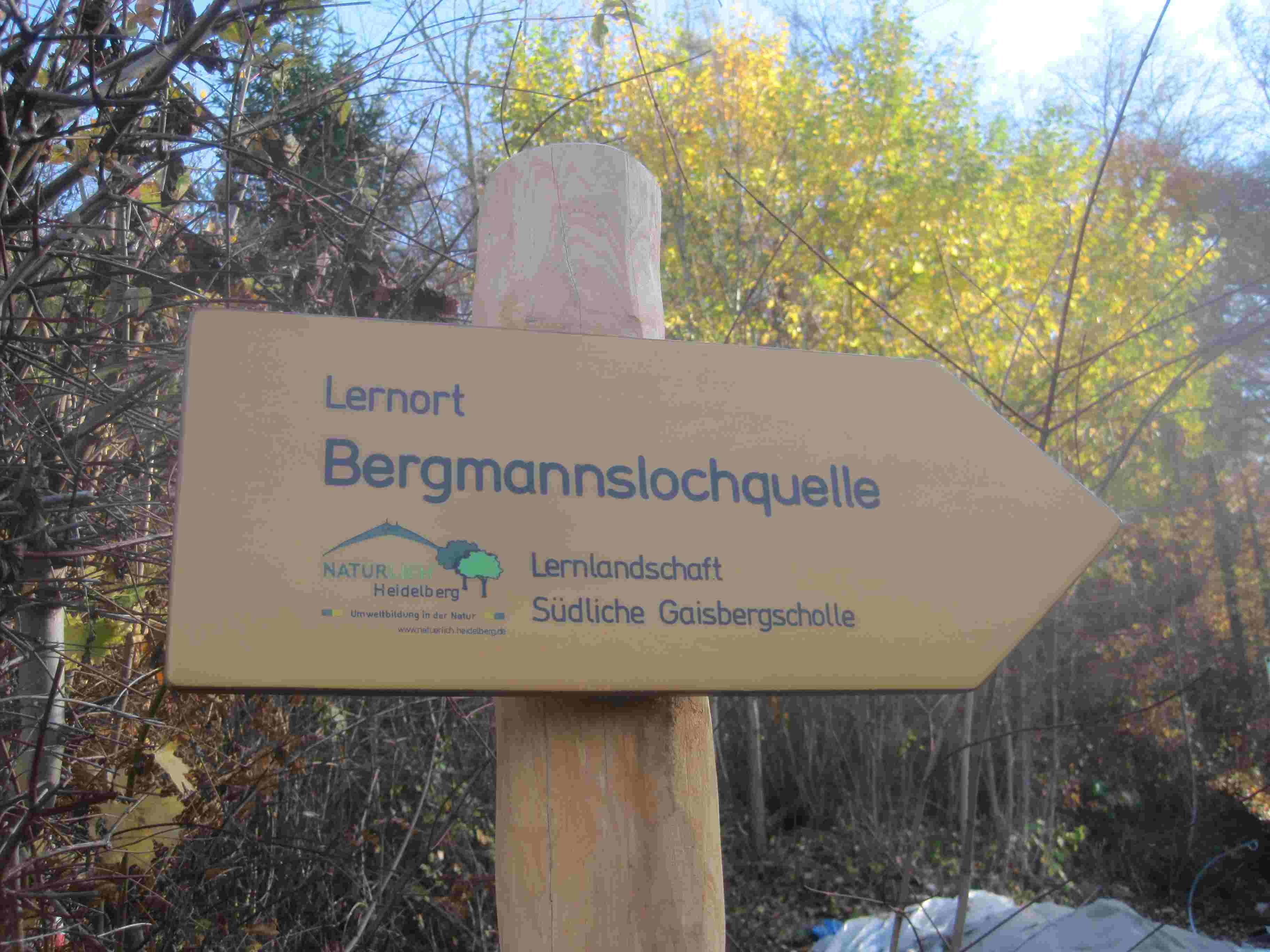 Bergmannslochquelle (Rohrbacher Wald, im Waldgewann Erlensumpf, am Lützelbrunnenweg, südlich der Lützelbrunnensteigquelle. Bezeichnung im 18. Jahrhundert: Carl-Theodor-Quelle. Die Quelle befindet sich in einem stillgelegten Bergstollen, der um 1790 von J.A.Traitteur als Teil seiner projektierten Wasserleitung von Rohrbach nach Mannheim neu erschlossen und ausgebaut wurde. Der vom Lützelbrunnenweg aus sichtbare Zugang zur Quelle ist heute durch ein Metalltor verschlossen. Im Inneren führt ein bergmännisch hergestellter Stollen ca. 60m in den Berg, davon sind die ersten ca. 20m ausgemauert, der Rest in Stein gehauen. Das Quellwasser entspringt im Inneren des Stollens und bildet dort ein kleines Rinnsal, das aber nicht nach außen dringt.)