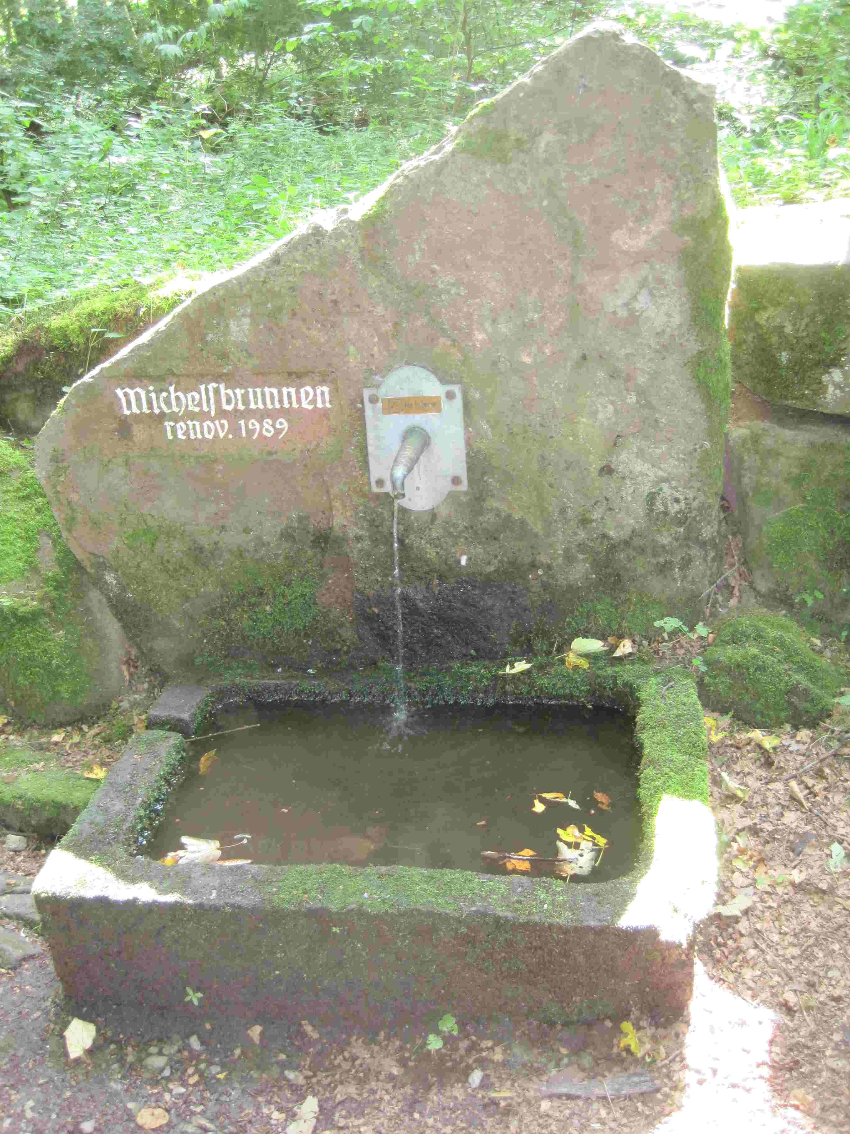 Unterer Michelsbrunnen (östlich des Kohlhofs, 1895 als Quelle gefaßt, vgl. Derwein 1940 Nr. 597); vgl. RNZ, 1. 7. 2009; vgl. Rombachbrunnen