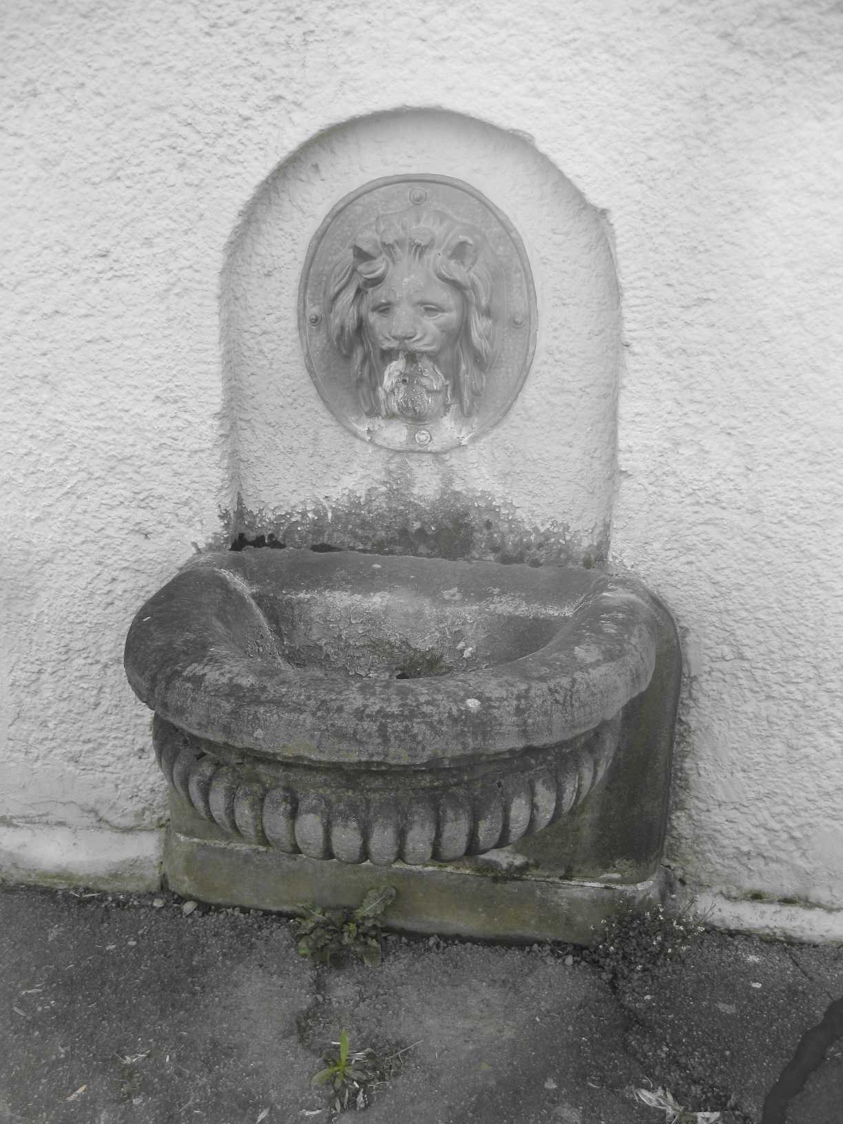 Brunnen mit Löwenkopf (Handschuhsheim, namenlos, am Wasserreservoir zwischen Waldweg und Mühltalstraße, erbaut um 1922, Leitungswasserbrunnen)
