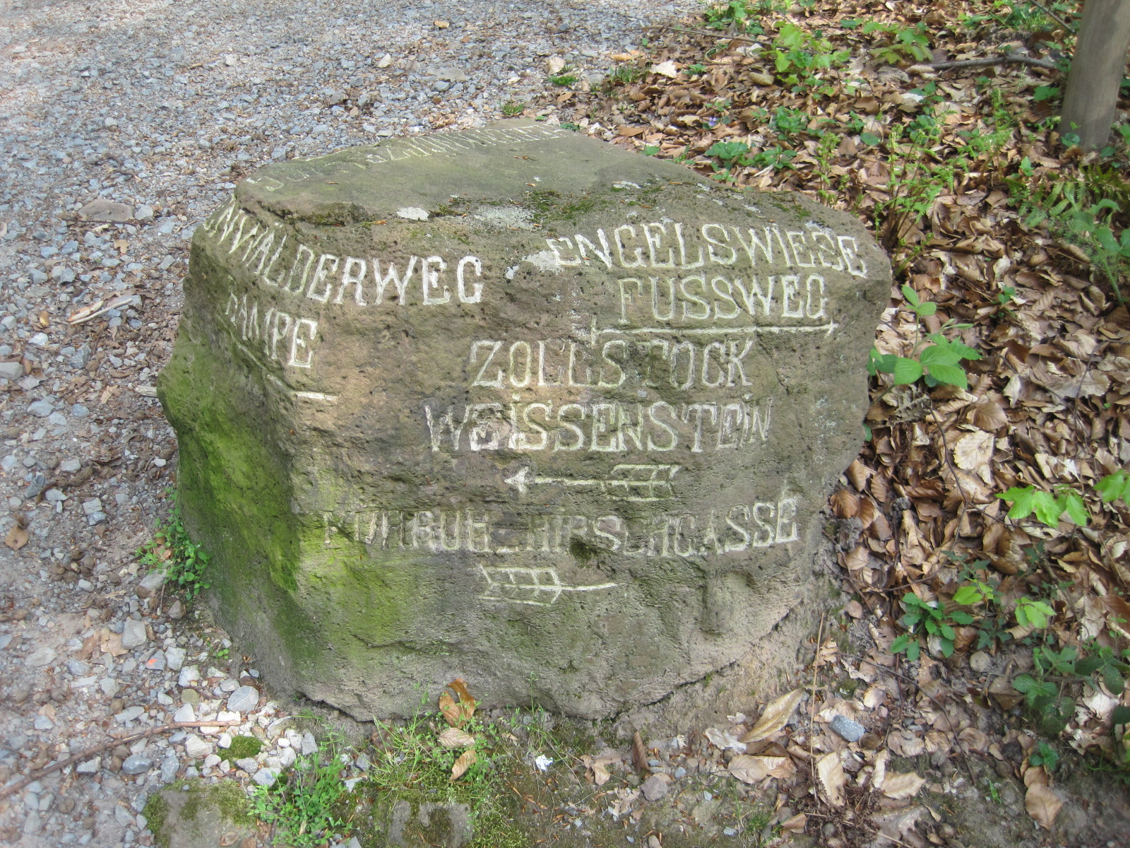 Ruhestein (Wegkreuzung bei der Ruhestein-Hütte, Neckargemünd/Kleingemünd/Wald, östlich des Lammerskopf (469 Meter), an der Grenze zu Hessen. Die steinerne Ruhe ist nicht mehr vorhanden. vgl. Ruhesteinweg, Steinerne Ruhe)