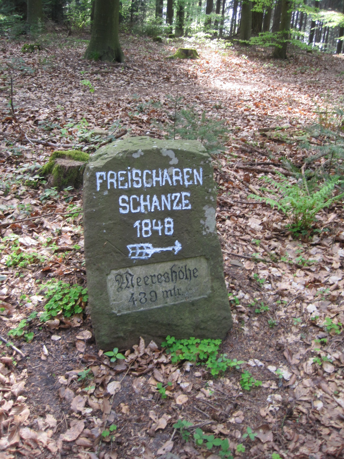 Freischarenschanze (Heiligenberg, beim Zollstock; 429 m über NN. Am 21. Juni 1849 (nicht 1848) gab es hier ein Gefecht zwischen badischen und preußischen Truppen; vgl. Annemarie Lindig, Ein Gang über die Freischarenschanzen [des Heiligenberg], in: Jahrbuch des Stadtteilvereins Handschuhsheim 1999, S. 53-56; Otto Jaeger, Die Flurnamen von Neuenheim. Heidelberg 1988, Nr. 237)