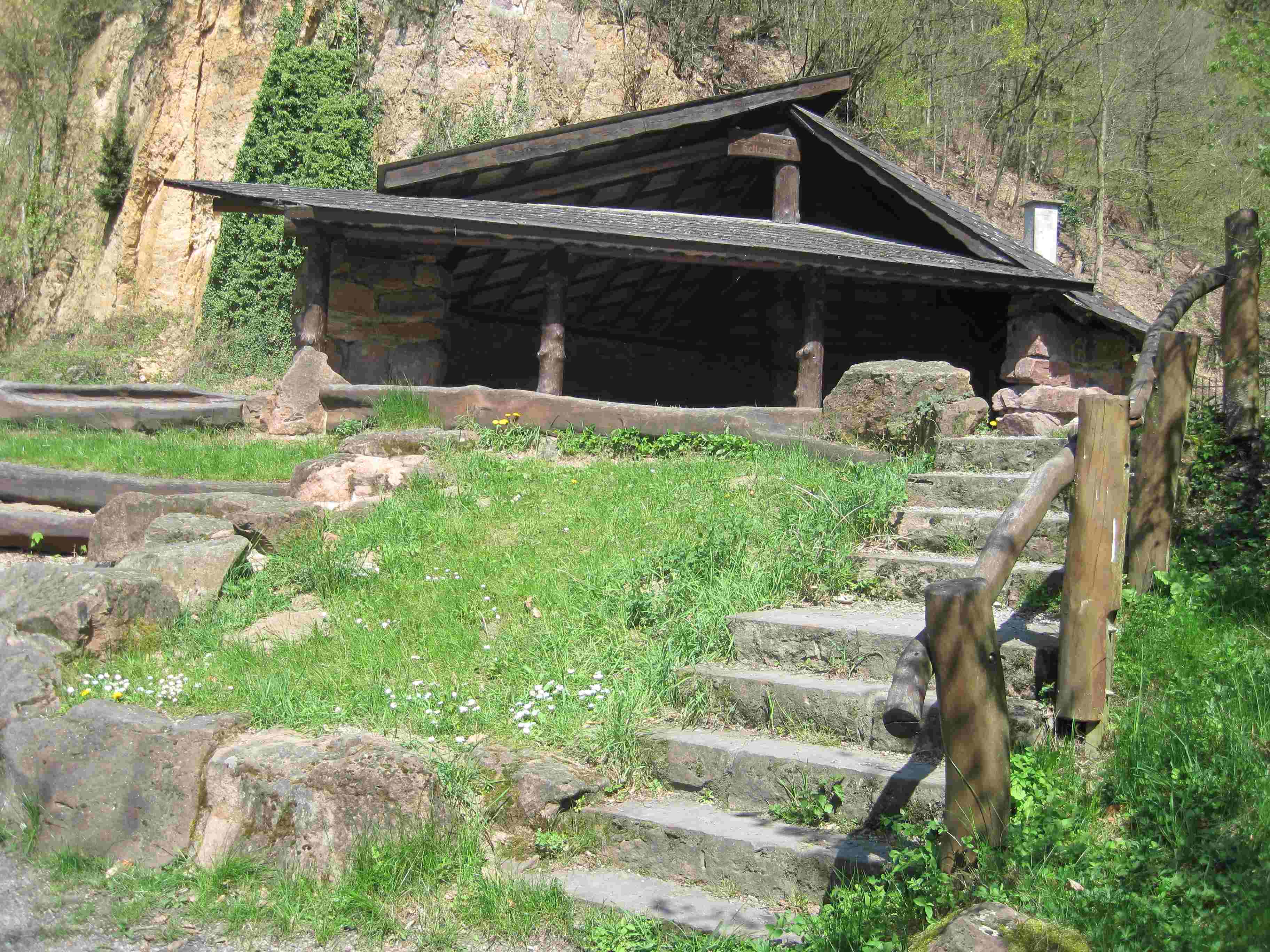 Meriankanzel (Heiligenberg, zwischen oberem und unterem Brandplattenweg, 279 Meter über NN, 1967 von Georg Kettenmann (Vermessungsamt) am Südhang des Heiligenberg entdeckt, 1988/89 und 2009 restauriert )