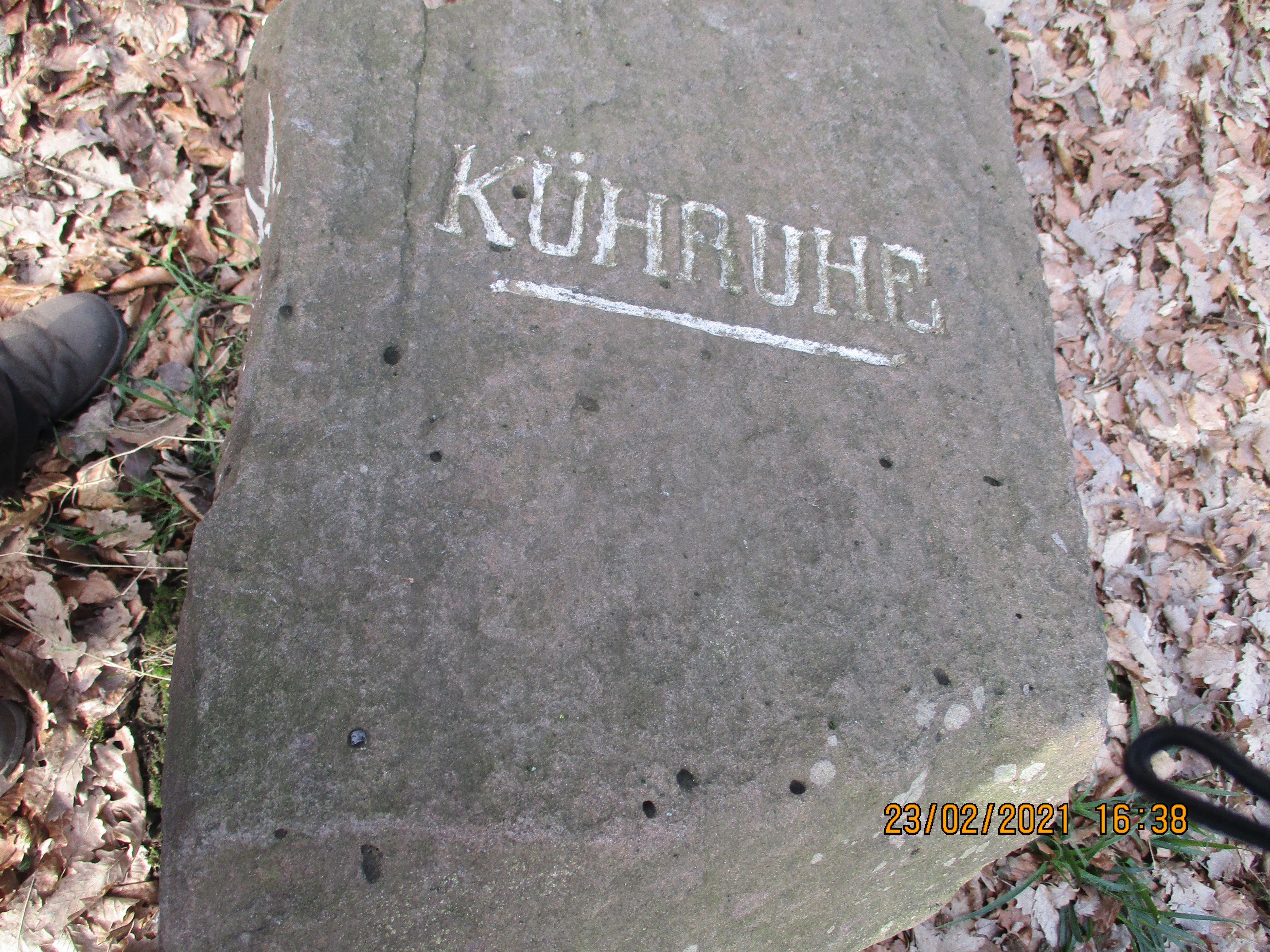 Kühruhe (Flurname, Neuenheim, Obere und untere Kühruhe, Gemeindegut aufwärts des oberen Philosophenwegs zum Heidenknörzel ziehend, erstmals erwähnt 1715, In der Nähe: Kühruhweg, Unterer Kühruhweg, Webersbrunnen; vgl. Jaeger 1988, Nr. 813)