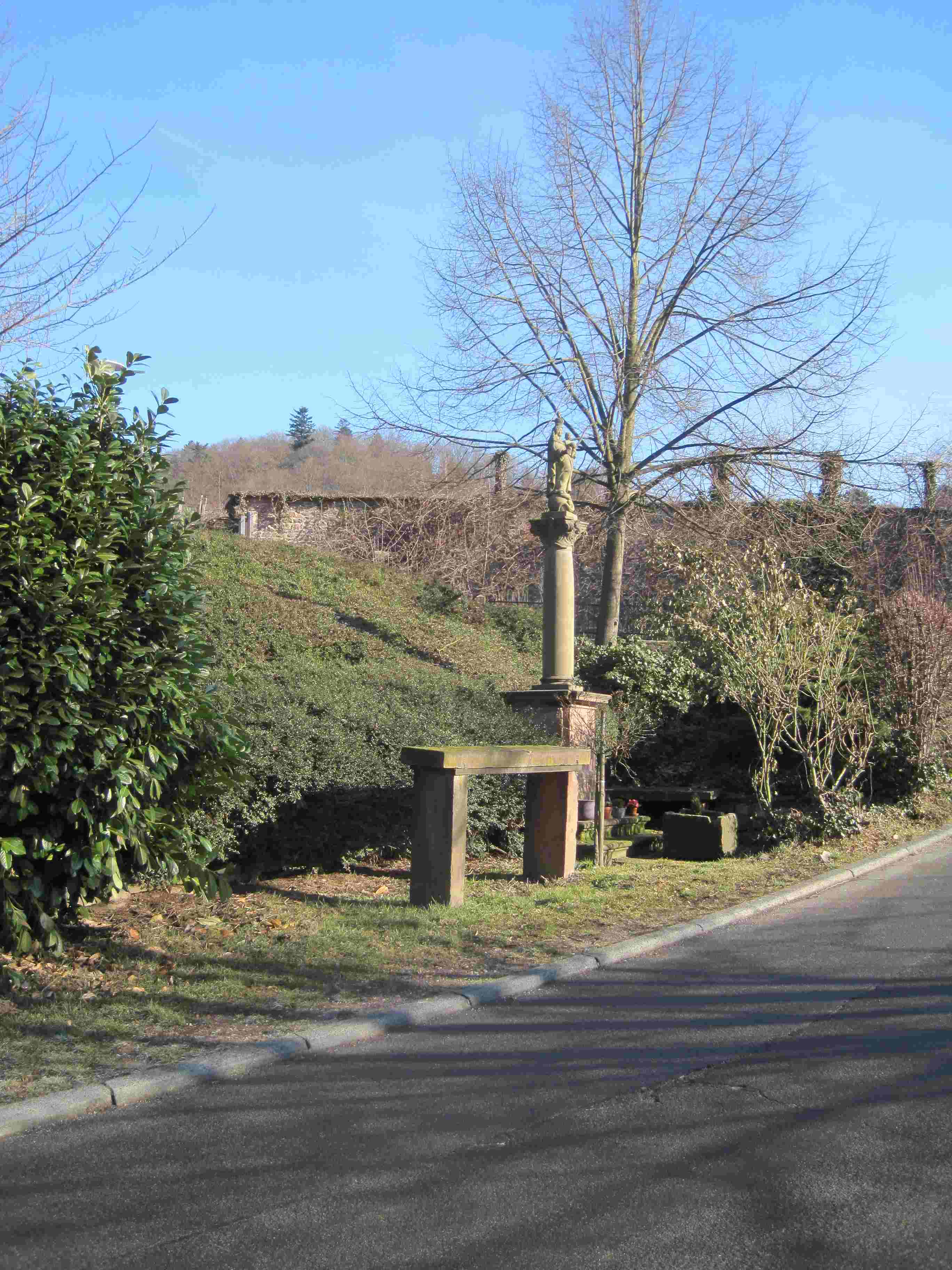 Kreuz an der Fahr (Neuenheim, an der Landstraße am Neckar, 1747 errichtet, 1850 erneuert, vgl. Jaeger 1988, Nr. 494)