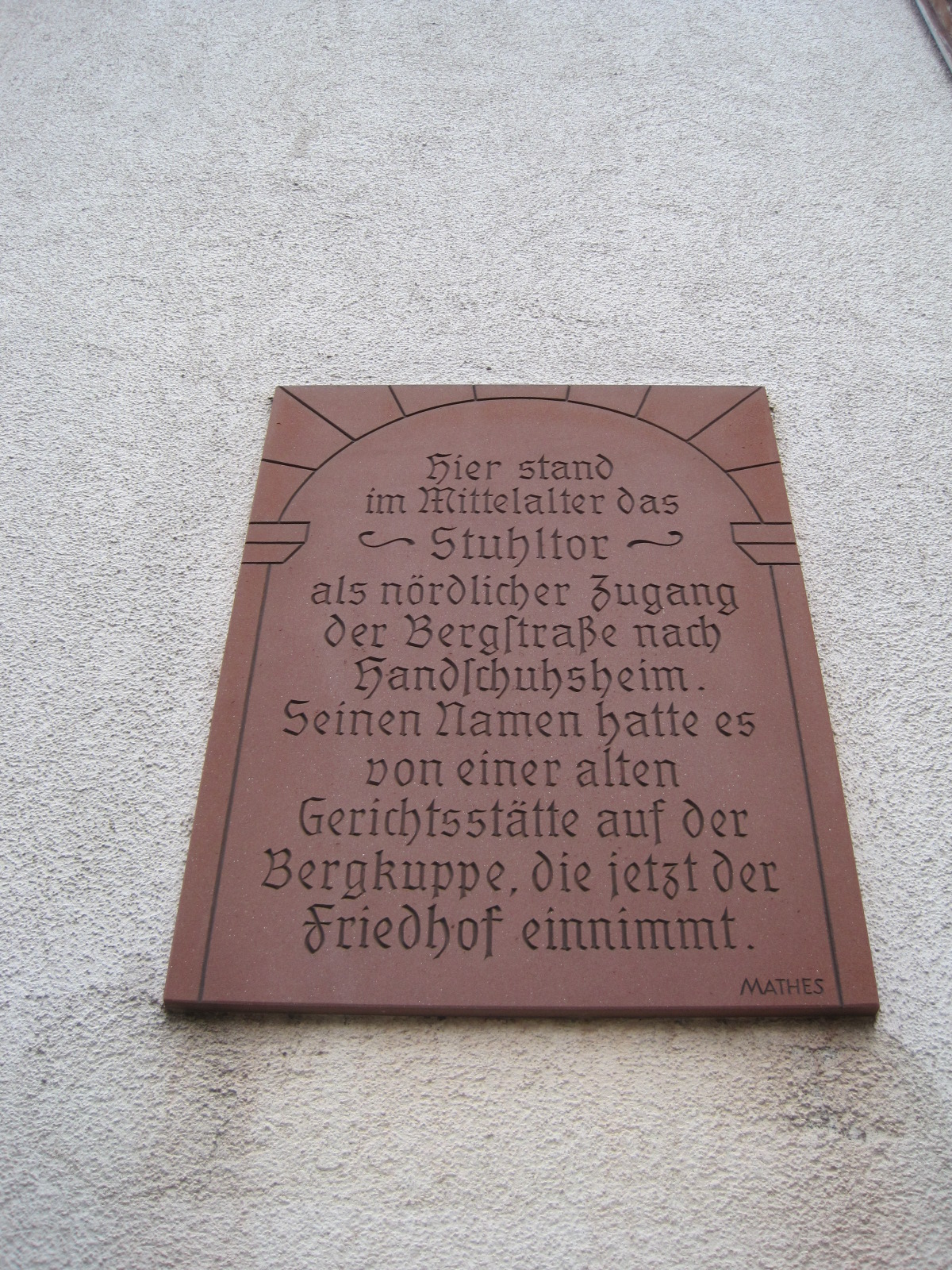 *Stuhltor (Handschuhsheim, Teil der Dorfbefestigung, 1623 erwähnt) (Fritz Frey, Die Flurnamen von Handschuhsheim. Heidelberg 1944, Nr. 448)