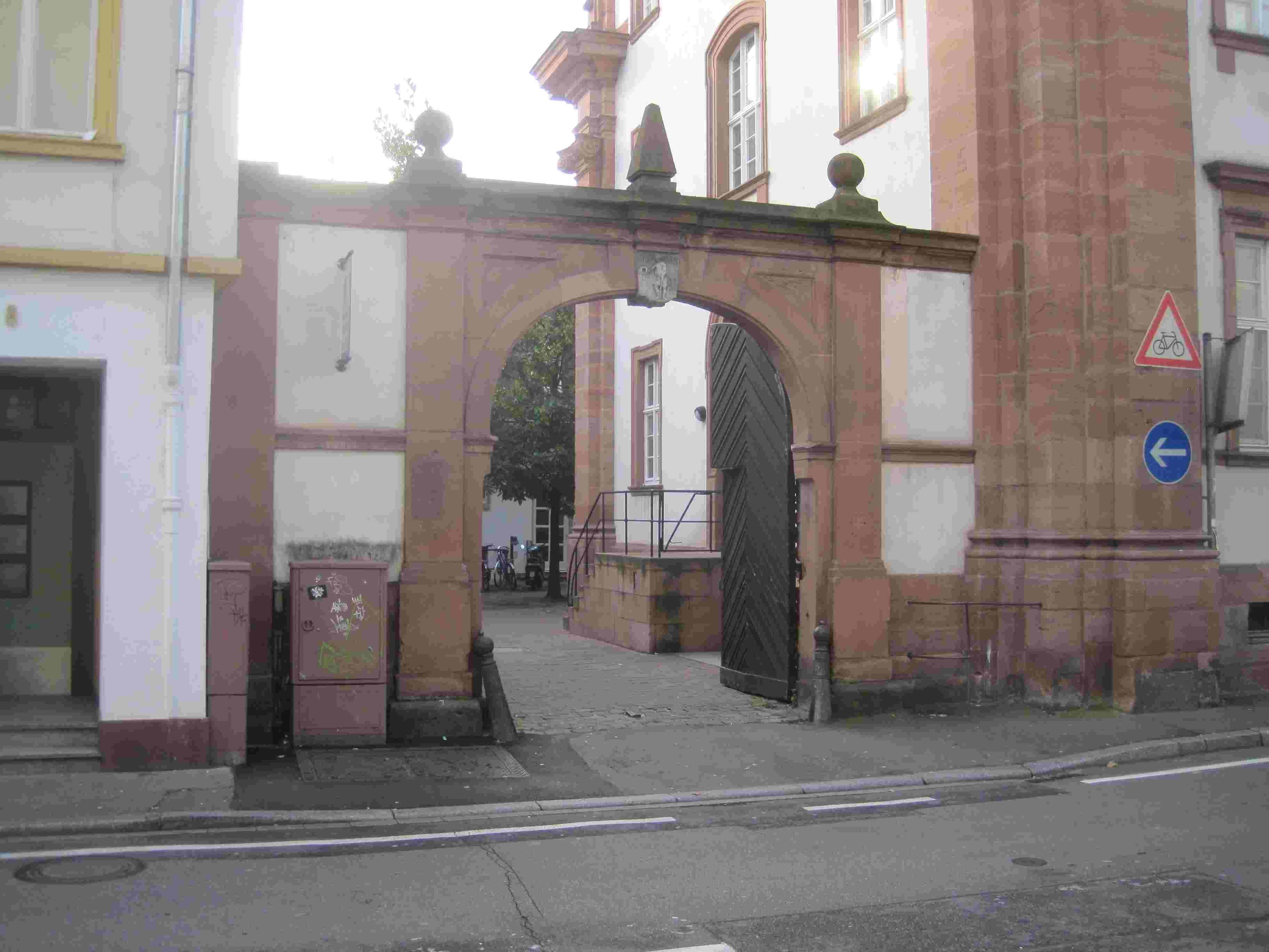 *Männer-Armenhaus (Pfründnerhaus I, Plöck 24, der zugehörige Garten lag am Wredeplatz; vgl. Übersichts-Plan der Stadt Heidelberg und Umgebung. Officiell angefertigt durch das Tiefbauamt. Maßstab 1:7500. Verlag Otto Petters Heidelberg. (Beilage zu Karl Pfaff, Heidelberg und Umgebung, Heidelberg 21902)