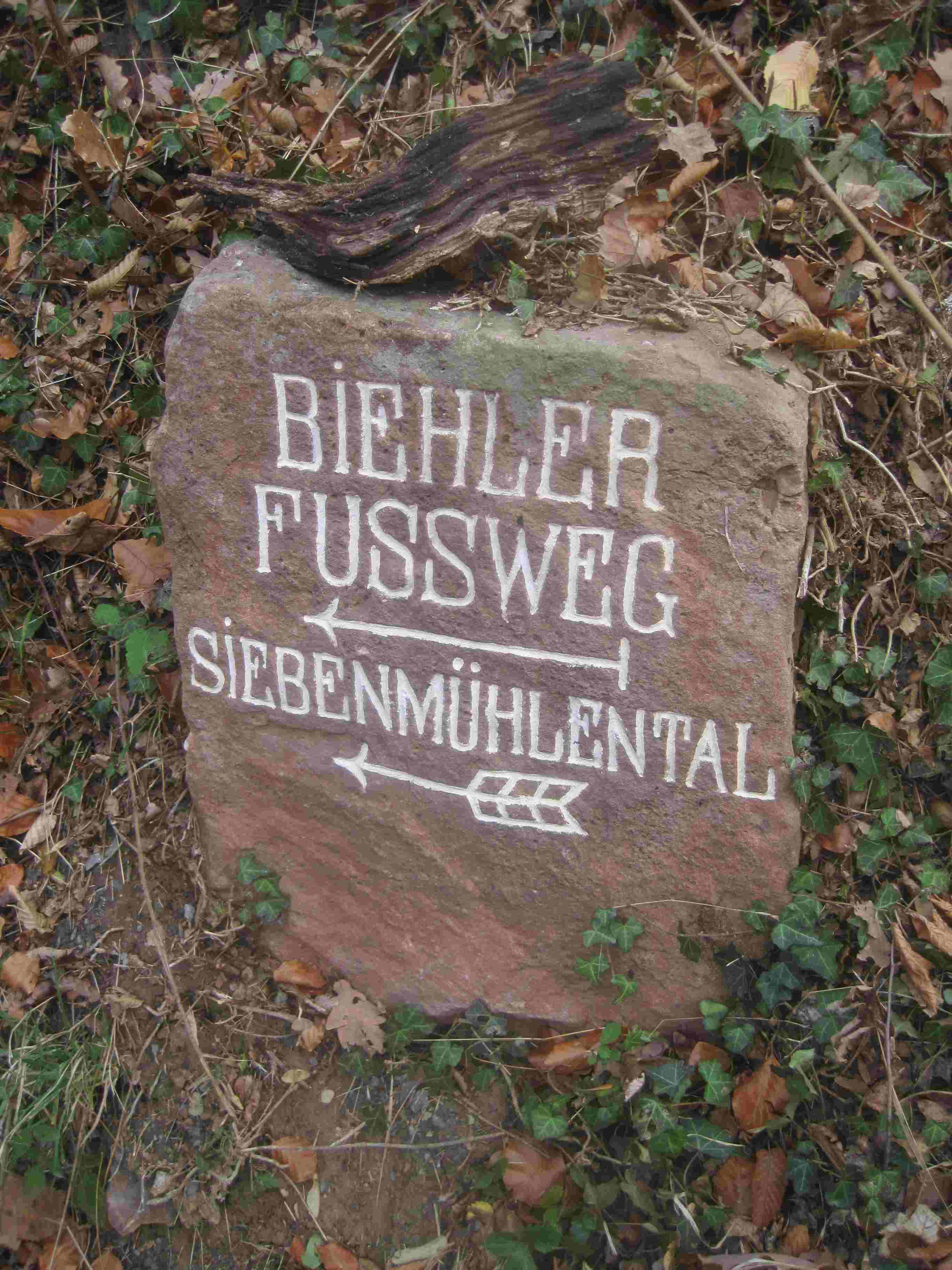 Biehler Fußweg (auch: Bühlerweg; Fußweg am Heiligenberg-Westrand, beginnt an der Mühltalstraße nördlich des Anwesens Mühltalstraße 126 (achte Mühle im Mühltal), überquert den "Waldweg", verläuft parallel dem Chaisenweg, zweigt von diesem wieder ab und zieht zur Mönchberghütte; benannt nach Bezirksförster (Emil?) Biehler, der ihn vermutlich 1876 anlegte)