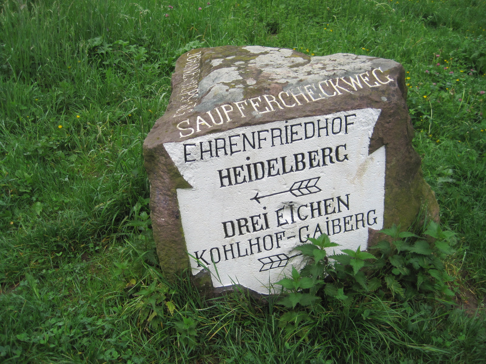 Bierhelder Steige (Stadtwald; 1712: Beerheller Weg; 1840: "der neue Friedhof im Eisengrein an der Bierhelder Steige"; Die alte Bergheimer Steige (Nr. 873) innerhalb des Waldes; "Gegen die Rohrbacher Grenze zu entspricht teilweise der heutige Promenadenweg (Nr. 710) ungefähr der Bierhelter Steig Pl. 1791"; vgl. Derwein 1940, Nr. 872)