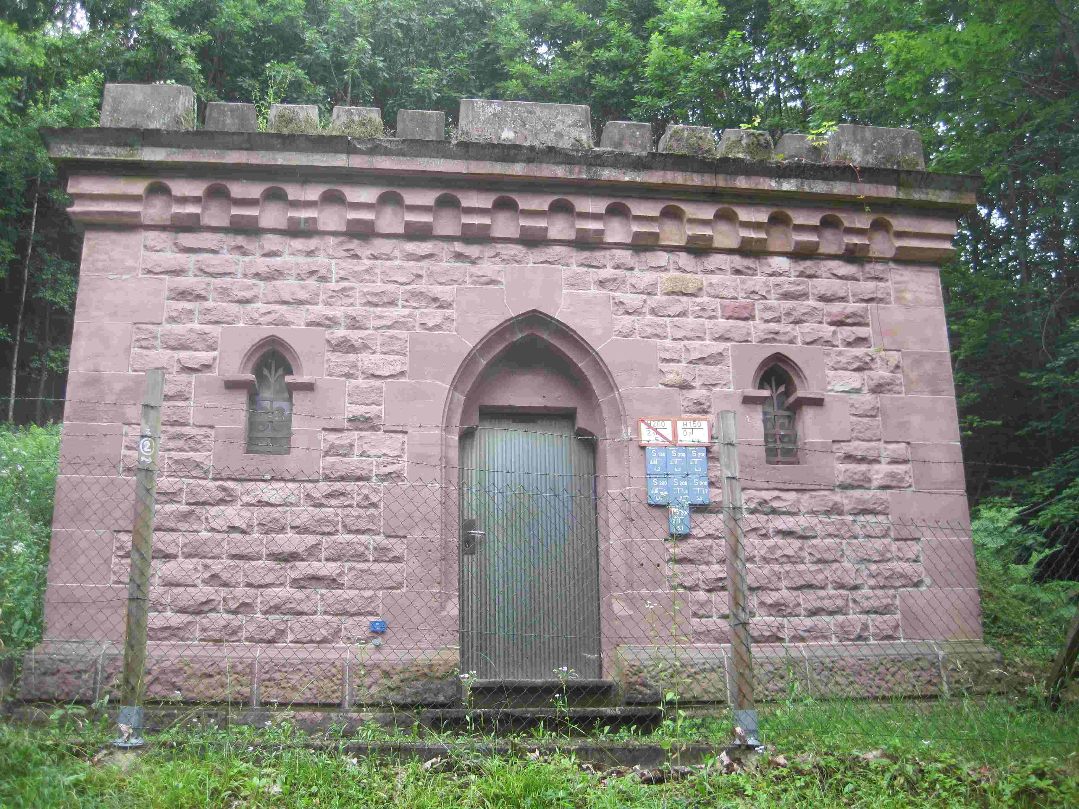 Wasserhochbehälter Rombachquelle (Schlierbach, 1876 Eröffnung der Rombach-Quellwasserleitung mit Wasserbehälter, 1895: Erweiterung durch Zuleitung von Roß- und Michelsbrunnen)