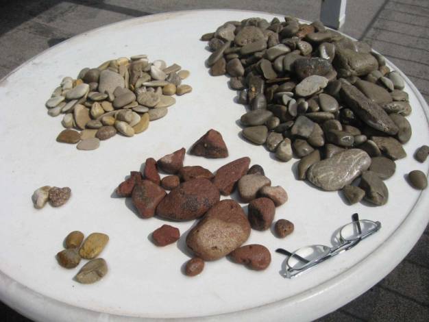 Abb. 2: Oben der stark mit Buntsandstein-Brocken durchsetzte, unten der typische vom grauen Muschelkalk dominierte Neckarkies
