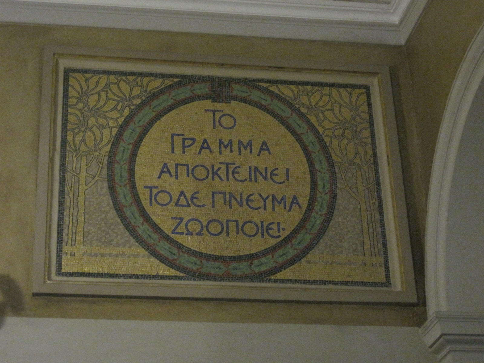 In schwerer Zeit / im Gefolge des großen Krieges wurde durch opferfreudige Arbeit und großherzige Hilfsbereitschaft in dem altehrwürdigen KURPFÄLZISCHEN ZEUGHAUS diese Halle geschaffen und als Akademische Speiseanstalt dem Wohl der Studenten gewidmet