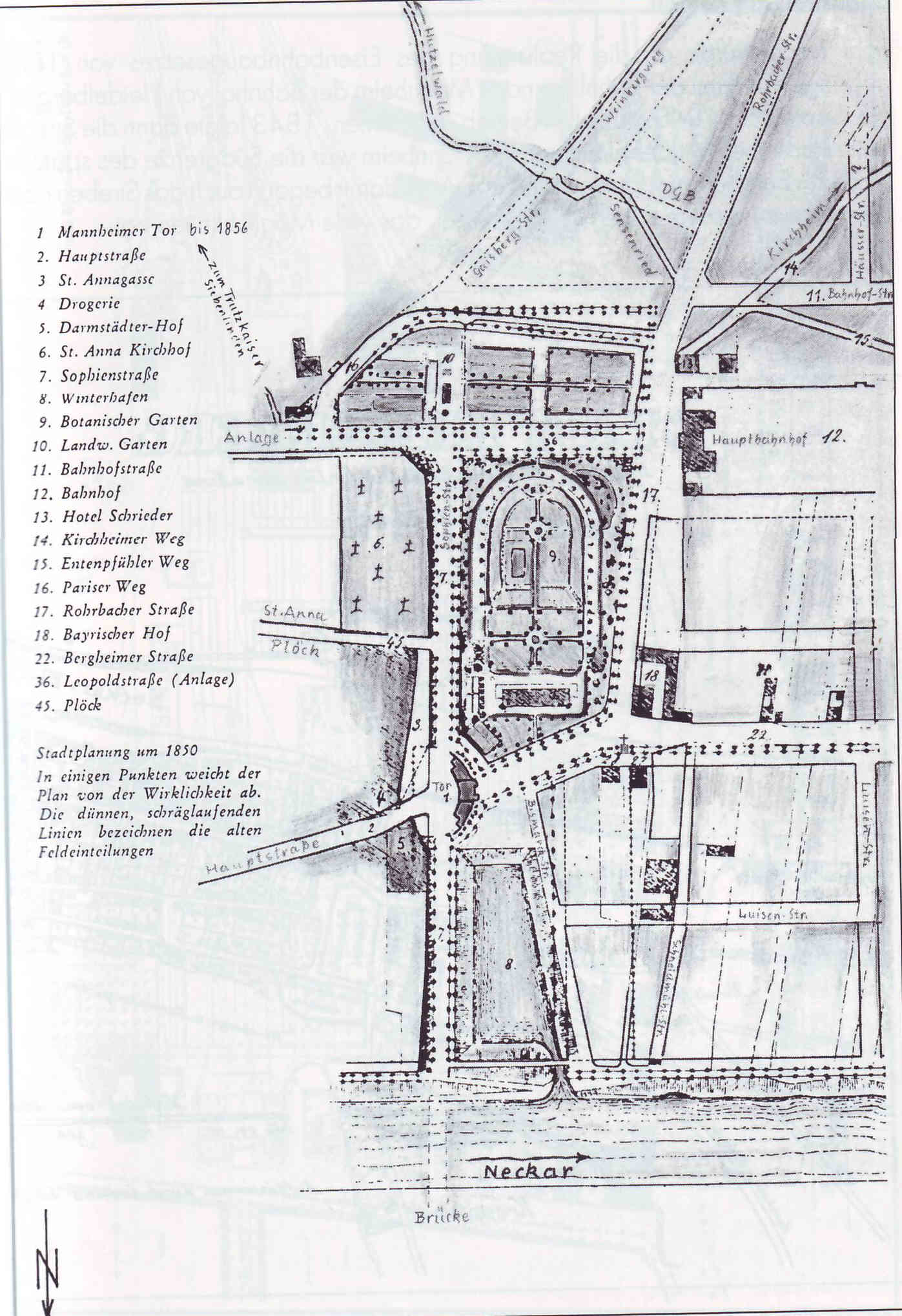 Plan des botanischen Gartens vor dem Mannheimer Tor, F. Heger, 1866