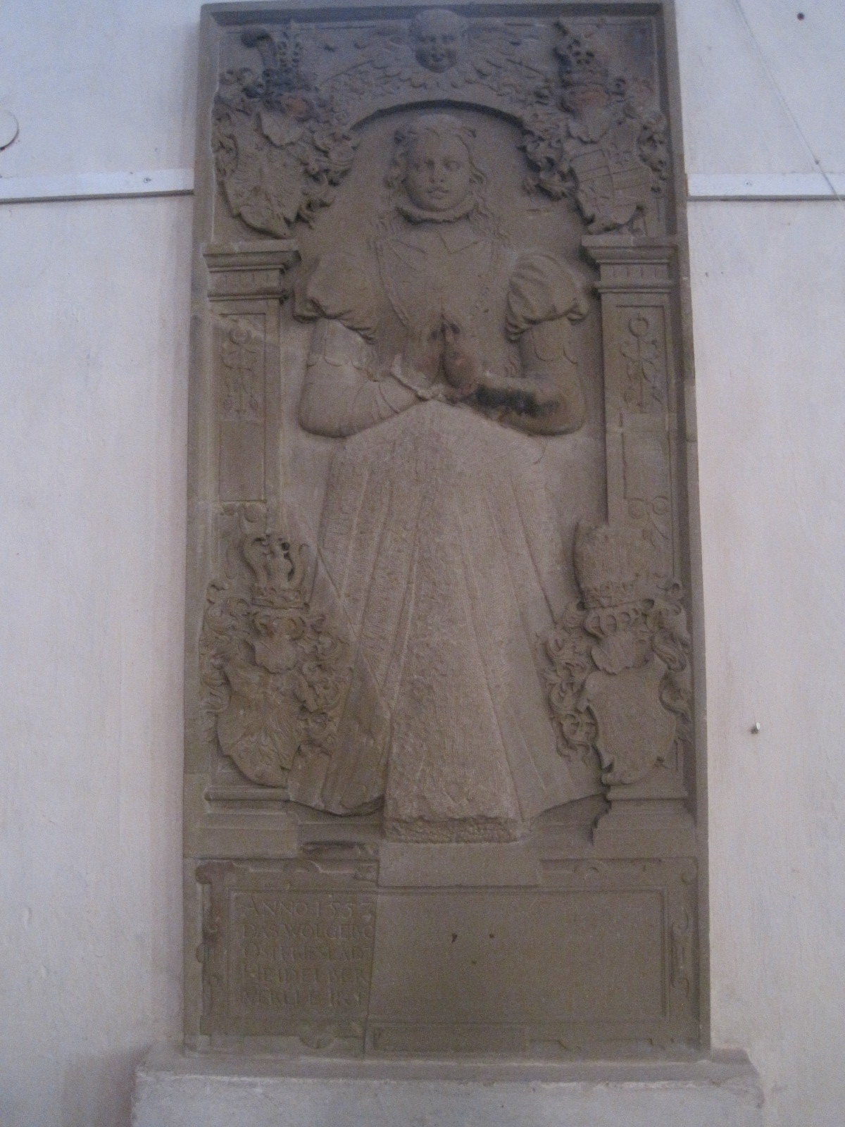 †12./20. Mai 1552 Heidelberg (steinerne Grabplatte 1956 in der Heiliggeistkirche aufgefunden und an der Nord-Innenwand aufgestellt)