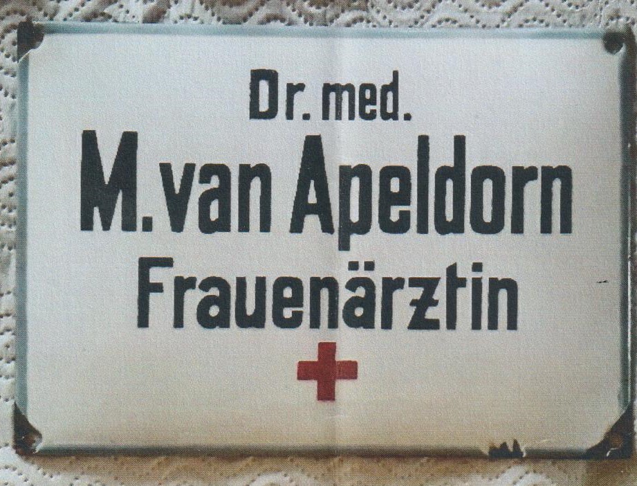 1938: Maria van Apeldorn steht im Mannheimer Adreßbuch als „Fachärztin für Frauenkrankheiten und Geburtshilfe“ unter Tattersallstraße 26. (im selben Adreßbuch: Apeldorn van Elis, Wwe, Seckenheimerstraße 12)