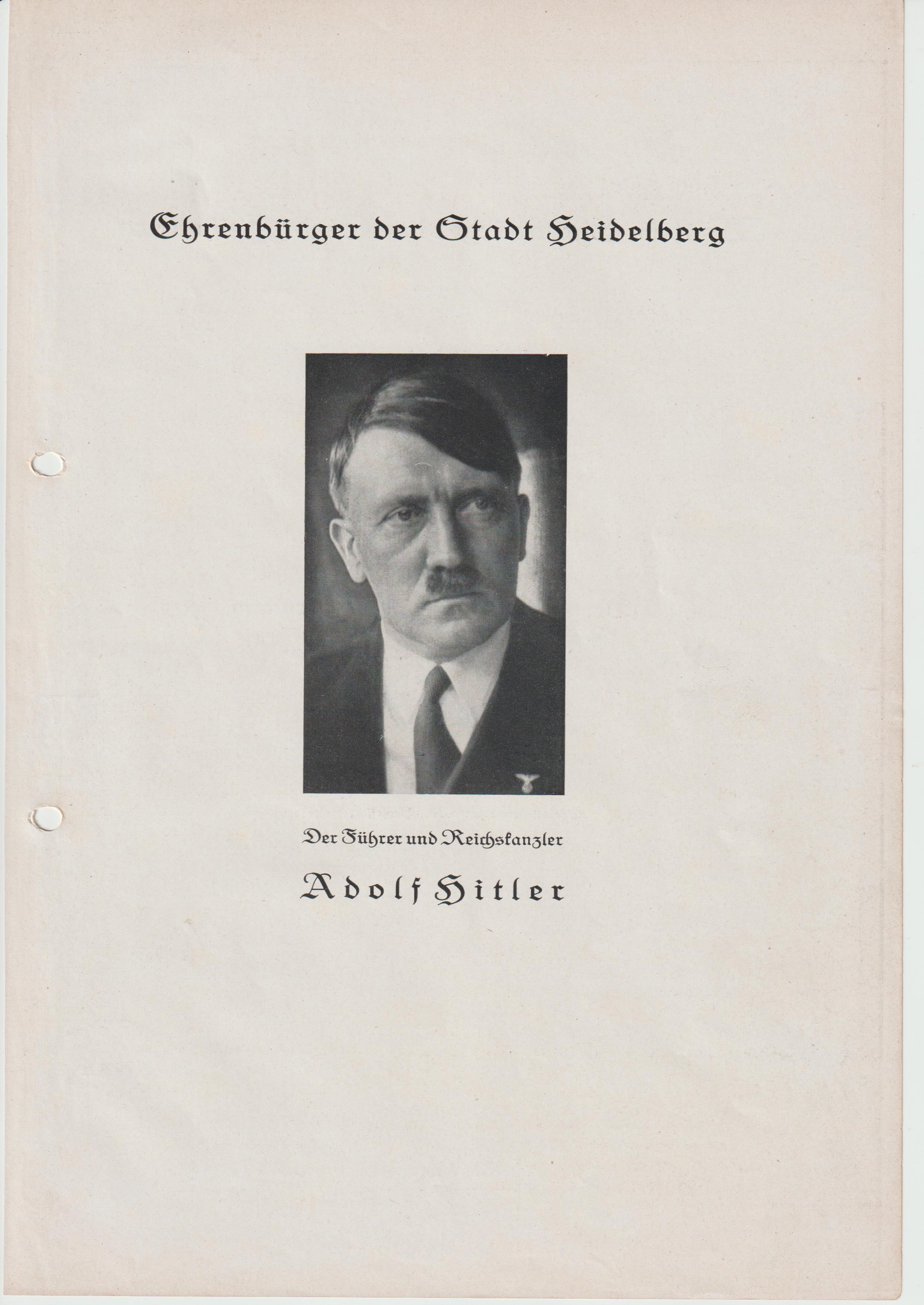 23. Mai 1933: Verleihung des Ehrenbürgerrechts der Stadt Heidelberg an RK Hitler