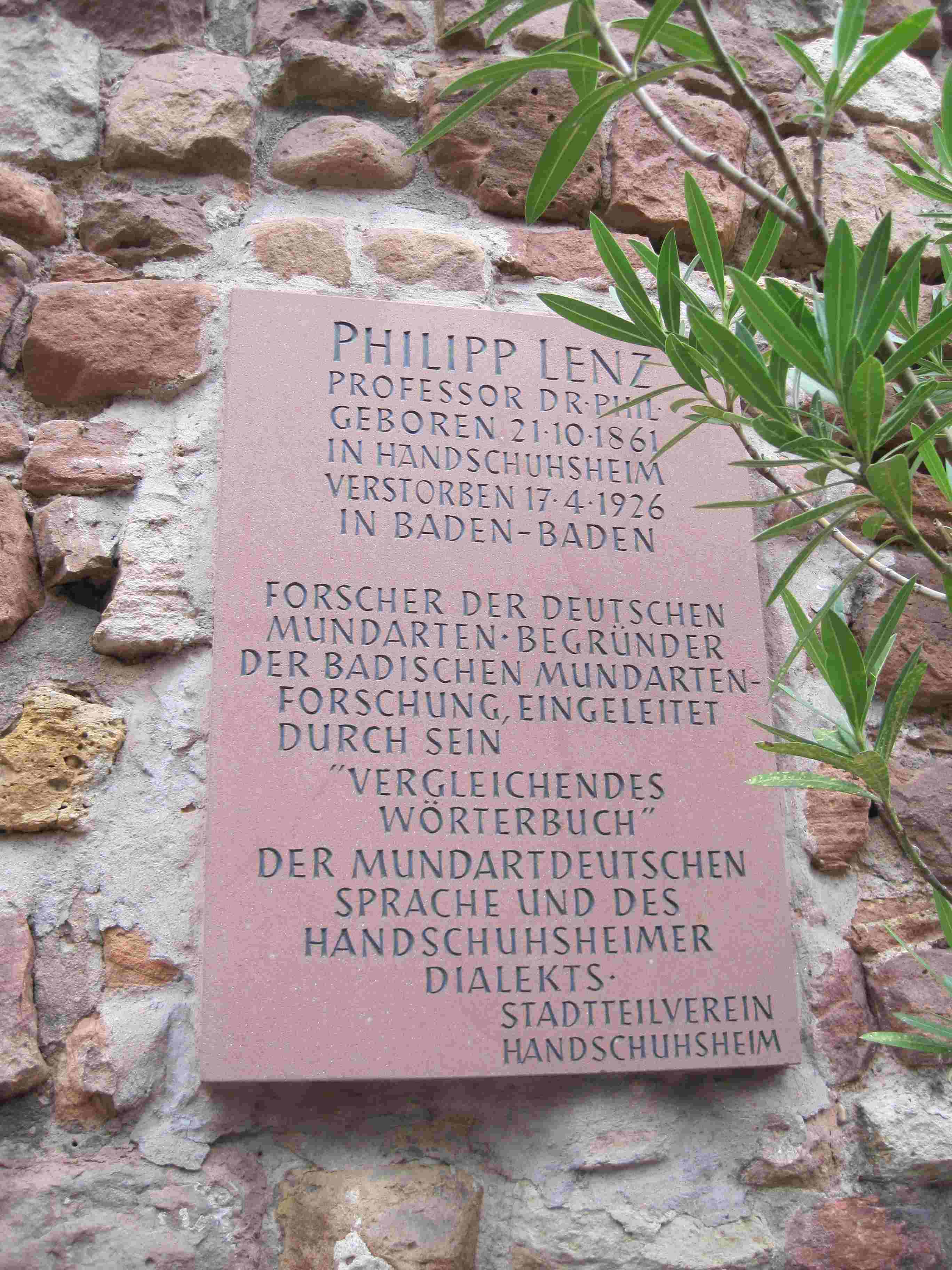 Philipp Lenz, Der Handschuhsheimer Dialekt. 1. Teil Wörterverzeichnis. Konstanz 1887 (auch Leipzig 1888) (Beilage zum Programm des Großherzoglich Badischen Gymnasiums Konstanz)