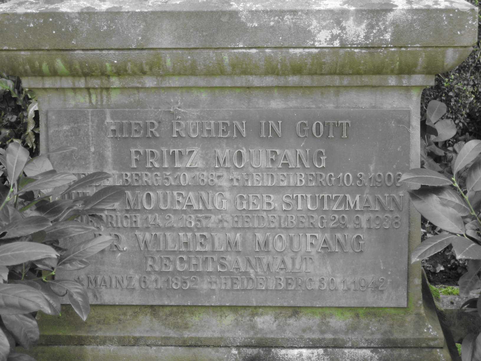 Wilhelm Moufang (*4. Oktober 1895 Heidelberg; †21. Januar 1989 Neckargemünd, Jurist, Kunstsammler, Autor, Astrologe) https://de.wikipedia.org/wiki/Wilhelm_Moufang