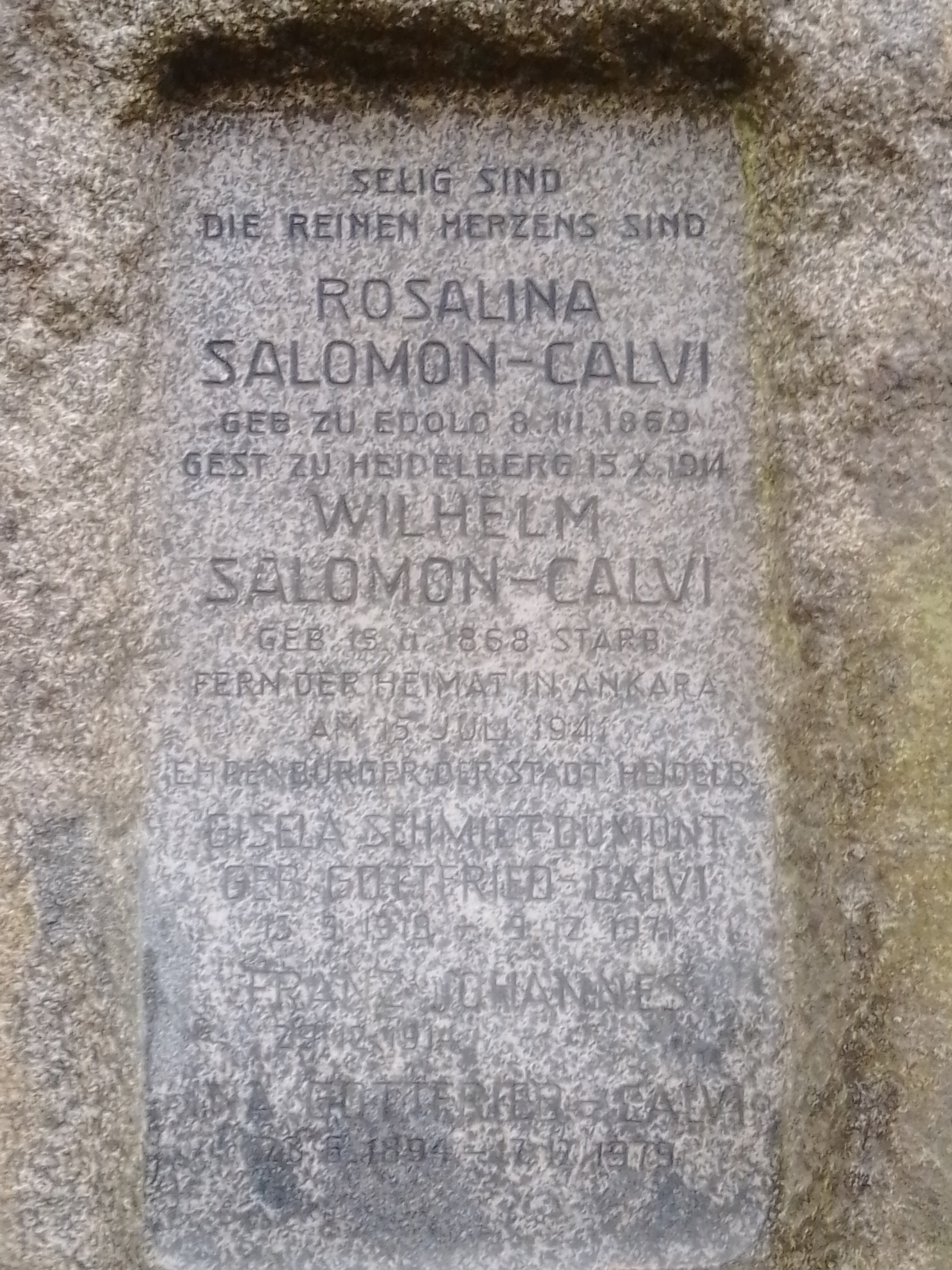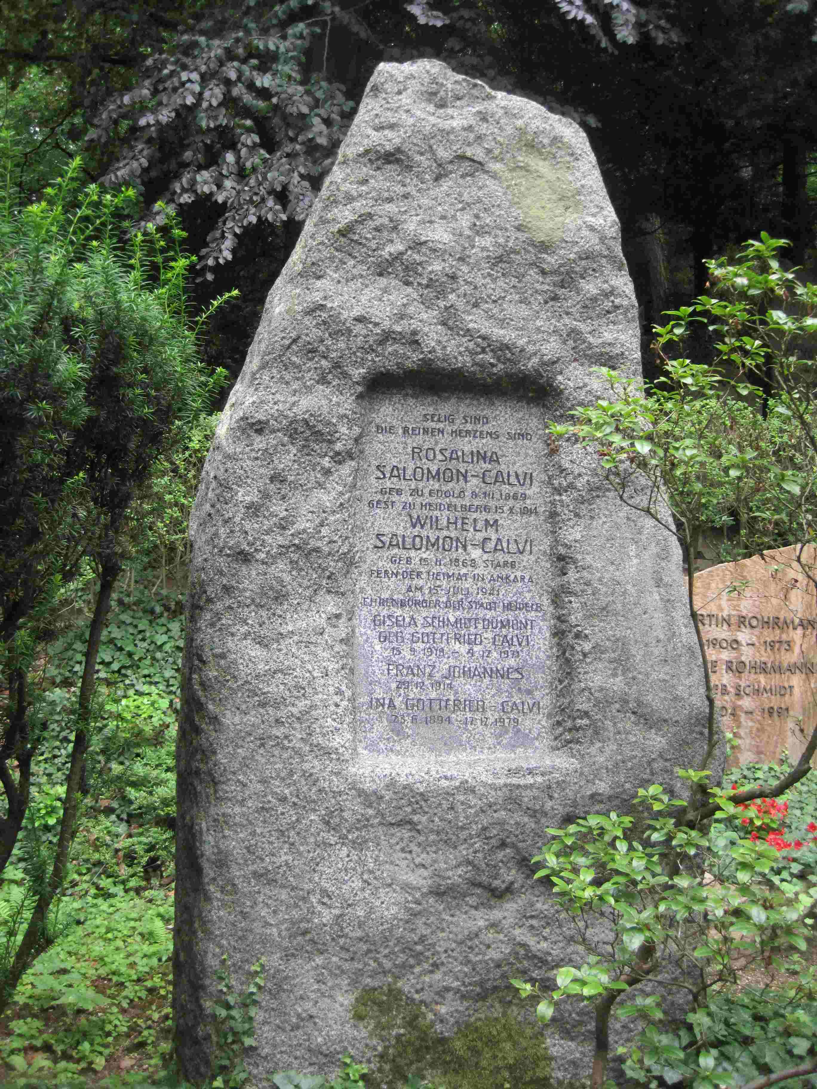 Juni 1923: nimmt nach dem Tod der Ehefrau (1914) zusätzlich den Mädchennamen seiner Frau an und nennt sich von nun an Wilhelm Salomon-Calvi. Wohnt Schloß-Wolfsbrunnenweg 17.