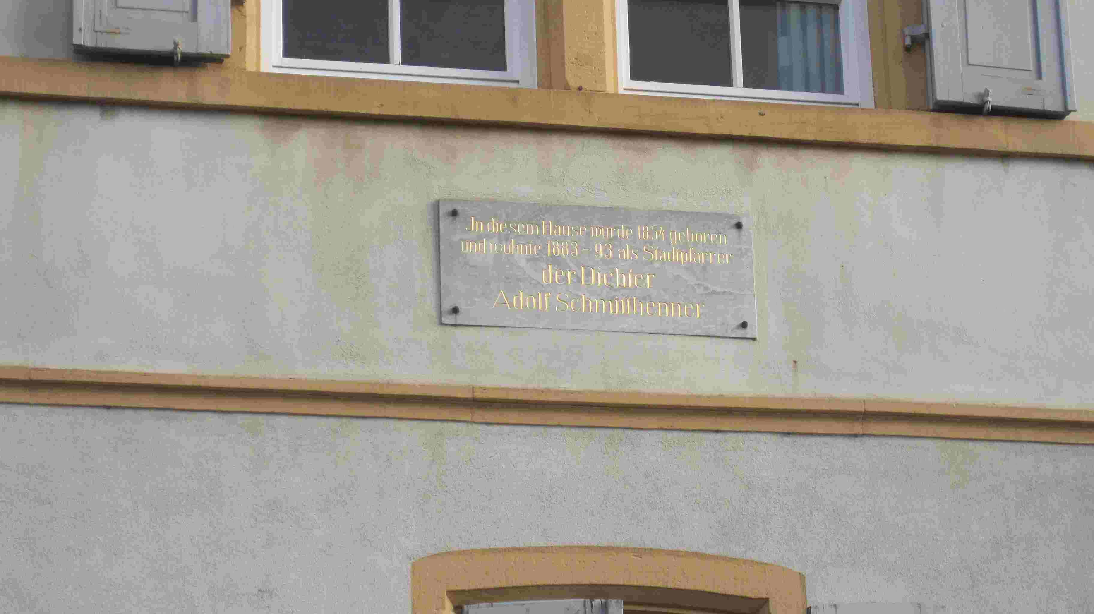 >Schmitthenner-Haus (Heiliggeiststraße 17, Pfarrhaus der Heiliggeistkirche. Inschrift am Tor: „Dem Dichter / Adolf Schmitthenner / Pfarrer bei Heiliggeist / zum Gedächtnis / 1854 - 1907“