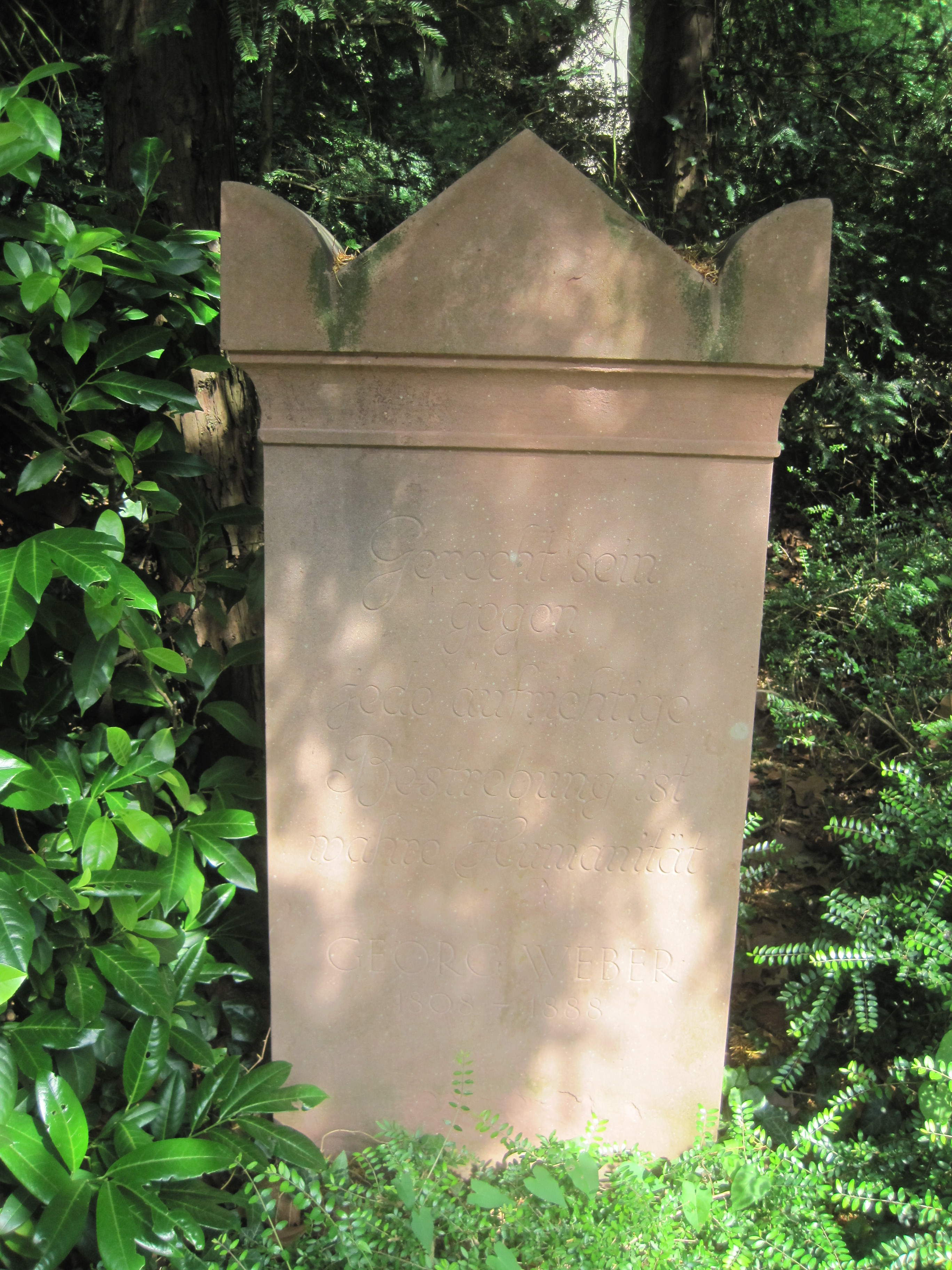 > Gedenkstele auf dem Heidelberger Bergfriedhof (Abteilung L). Inschrift: „Gerecht sein / gegen / jede aufrichtige / Besserung ist / wahre Humanität / Georg Weber / (1808-1888)“