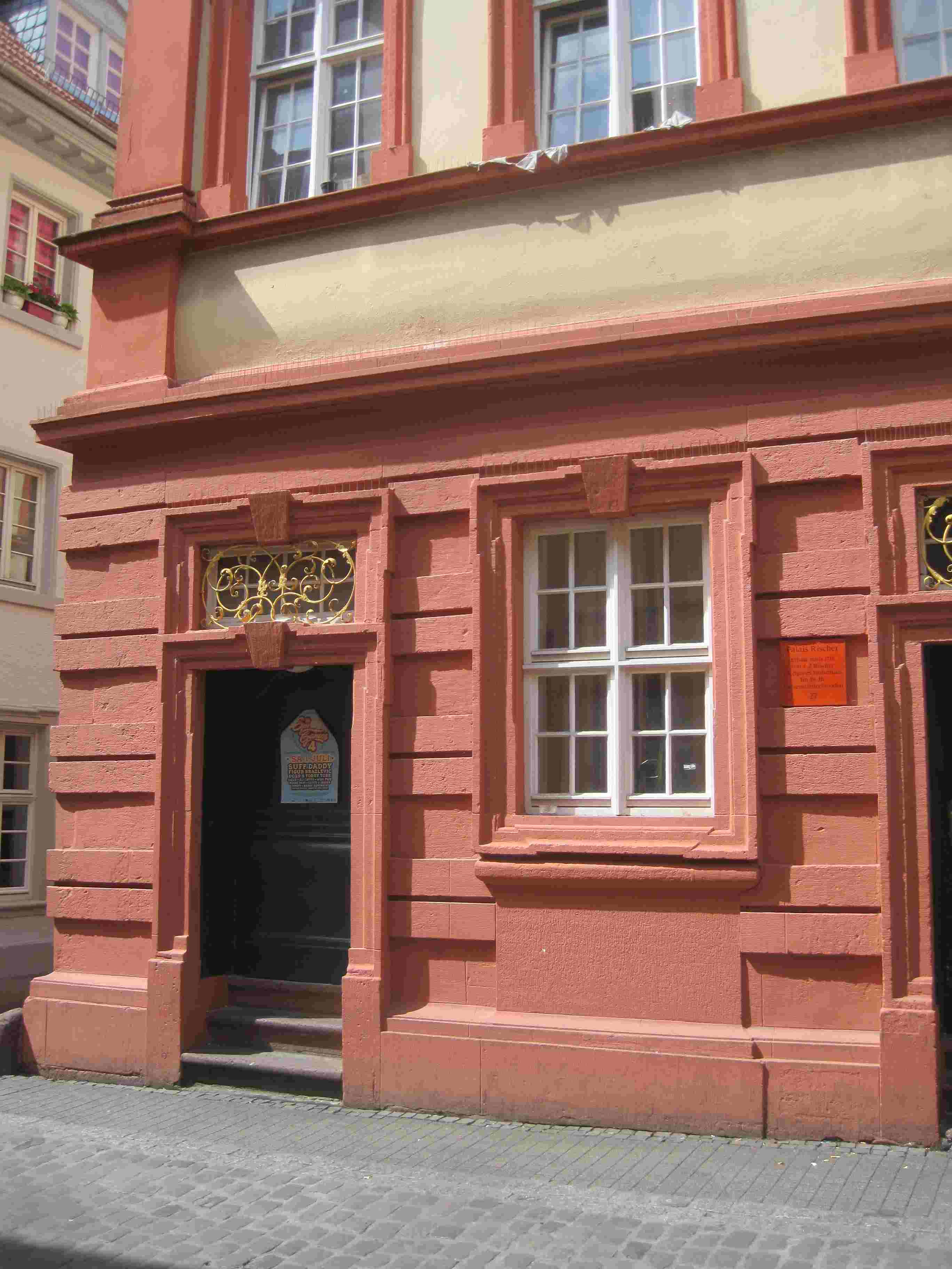 1711/1713: Haus Rischer (Untere Straße 11; vgl. Frieder Hepp, Hans-Martin Mumm (Hg.), Heidelberg im Barock. Der Wiederaufbau der Stadt nach den Zerstörungen von 1689 und 1693. Begleitband zur Ausstellung im Kurpfälzischen Museum der Stadt Heidelberg. Heidelberg 2009, S. 149)