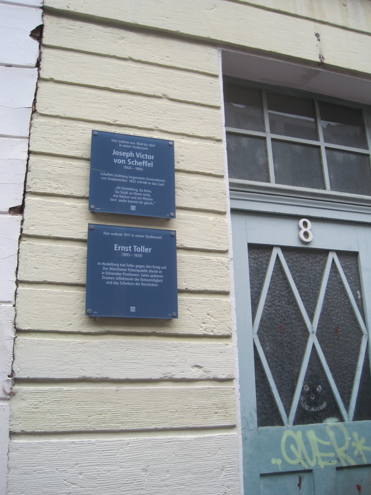 >Gedenkplakette am Haus seiner Studentenbude (Friedrichstraße 8)