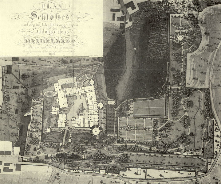 Gebäude und Geländeteile auf dem Heidelberger Schloß und Garten