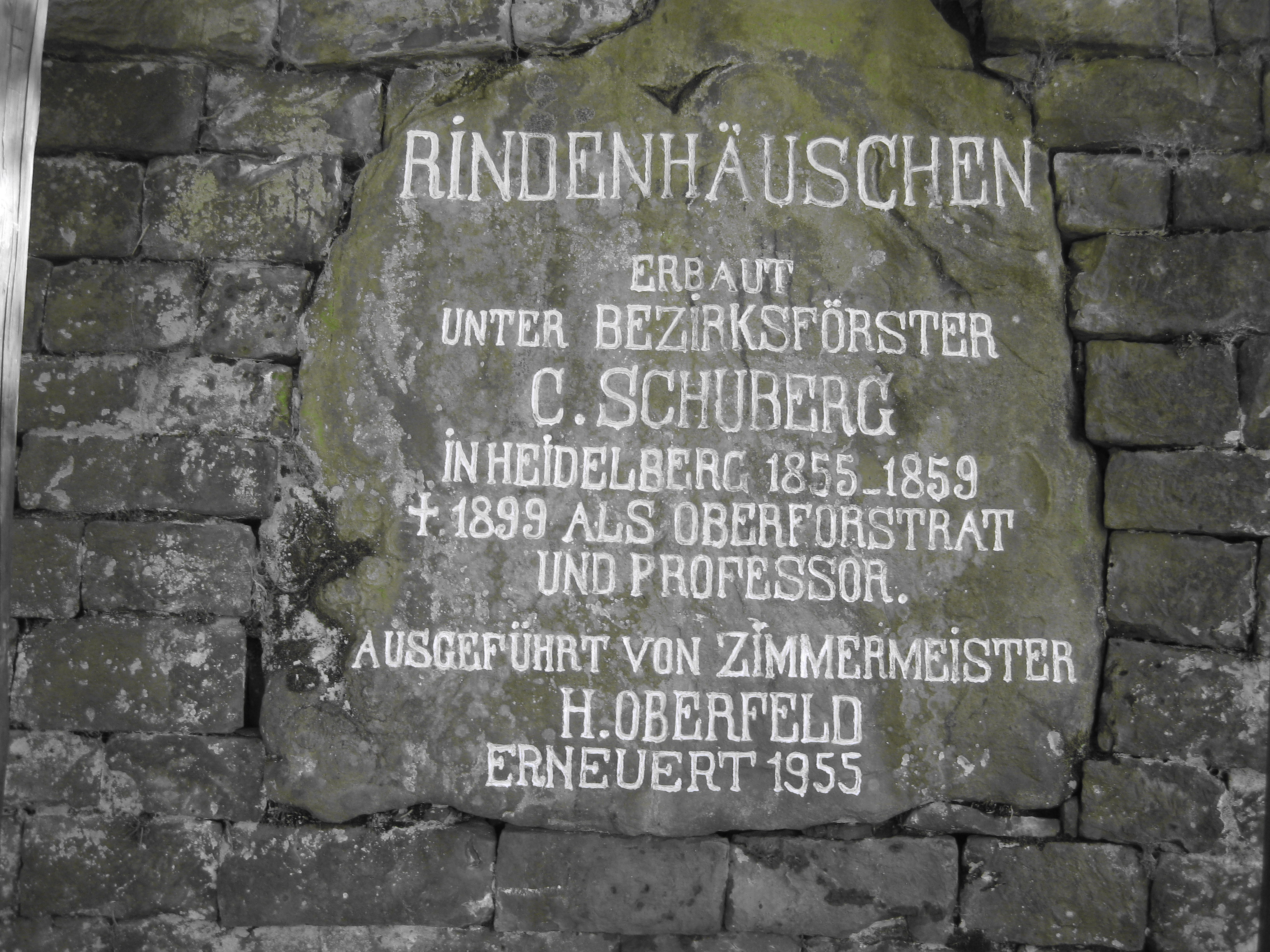 1855-1859: Carl Schuberg (†1899) Bezirksförster in Heidelberg. In dieser Zeit errichtet er das "Rindenhäuschen" als Erholungsanlage für die Bevölkerung am Felsenmeerweg.