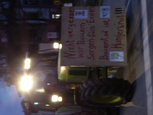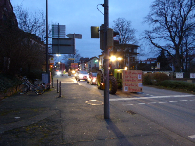 8. Januar 2024, ca. 8 Uhr: protestierende Bauern fahren mit Traktoren durch die Stadt