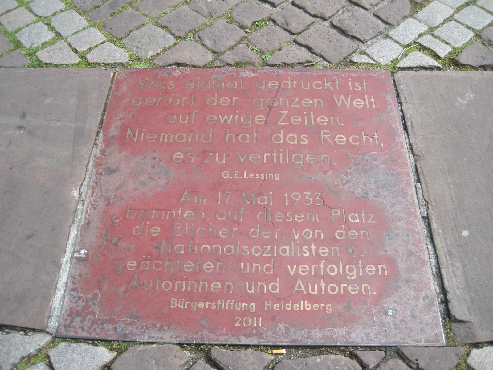 Januar 2010: der Kulturausschuß der Stadt Heidelberg beschließt, daß „Stolpersteine“ zur Erinnerung an 1933-1945 verfolgte Mitbürger im öffentlichen Raum verlegt werden können. Häuser, in denen jüdische Familien vor ihrer Deportation zusammengezogen wurden, sollen Gedenktafeln erhalten. (Am 13. Oktober 2010 werden die ersten Stolpersteine verlegt). http://www.stolpersteine-heidelberg.de/index.html