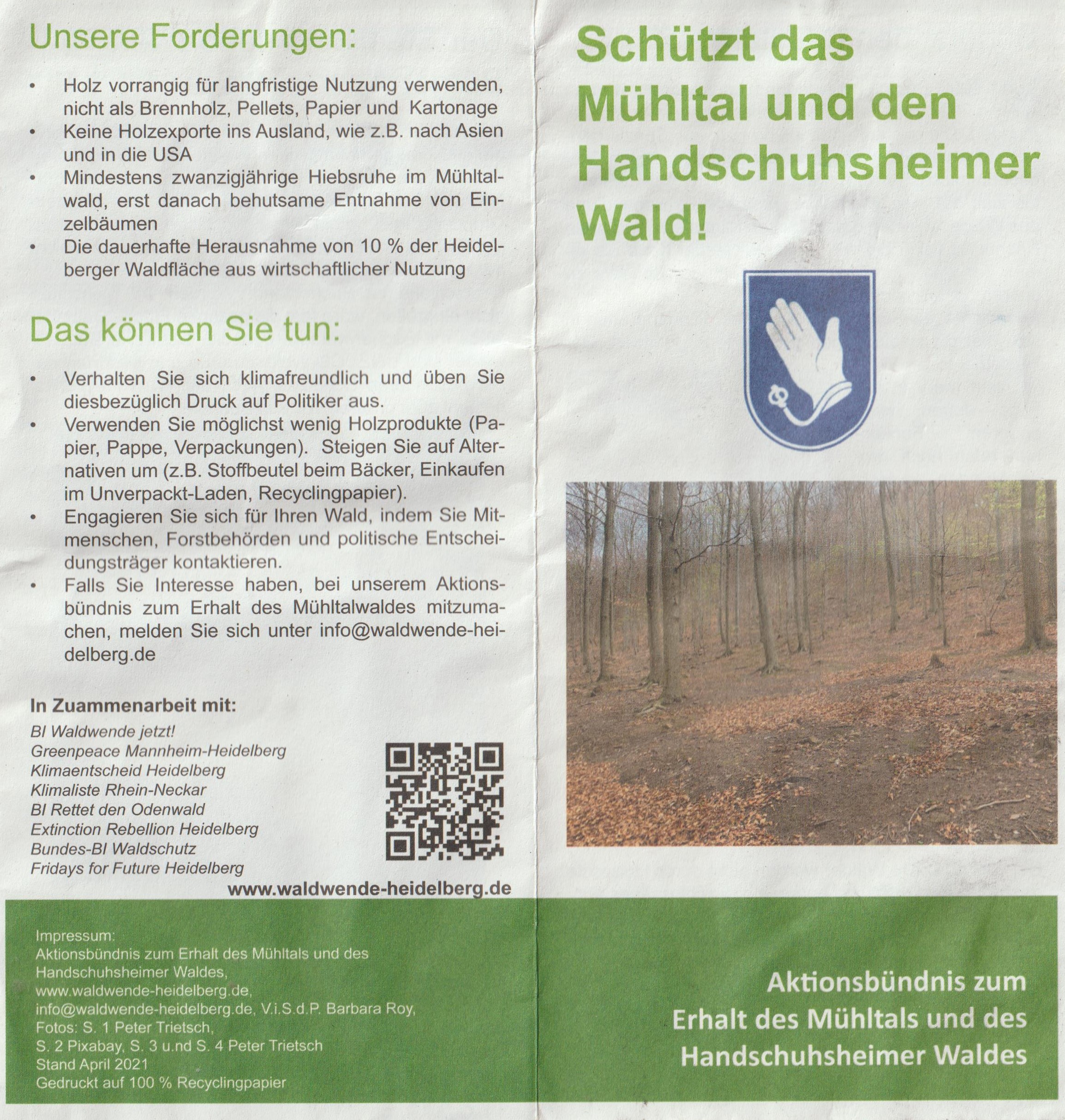 12. September 2023: die Stadtverwaltung Heidelberg veröffentlicht eine Informationsvorlage für dien nächste Sitzung des AKUM (Ausschuss für Klima, Umwelt und Mobilität) am 20.9.2023. Darin gibt sie bekannt, dass sie dem VRRN (Verband Region Rhein-Neckar) folgende Flächen als zukünftige Windindustriezonen für den neuen Regionalplan Wind anbietet: - südlich Weißer Stein zwischen Siebenmühlental und Kreuzgrundtal,- Hoher Nistler und Lammerskopf (zusätzlich zu den Flächen von ForstBW)